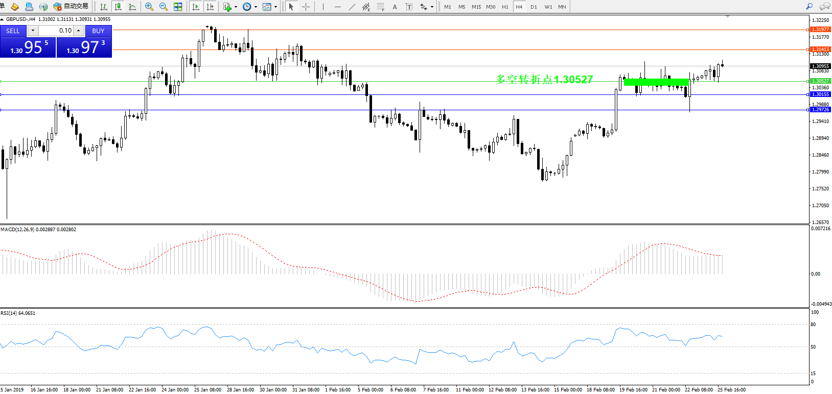 交易策略:1.30527上方看涨,目标1.314131.31977