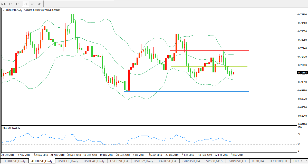 交易策略:在0.7145之下,看跌,目标价位为0.7045,然后为0.6990。