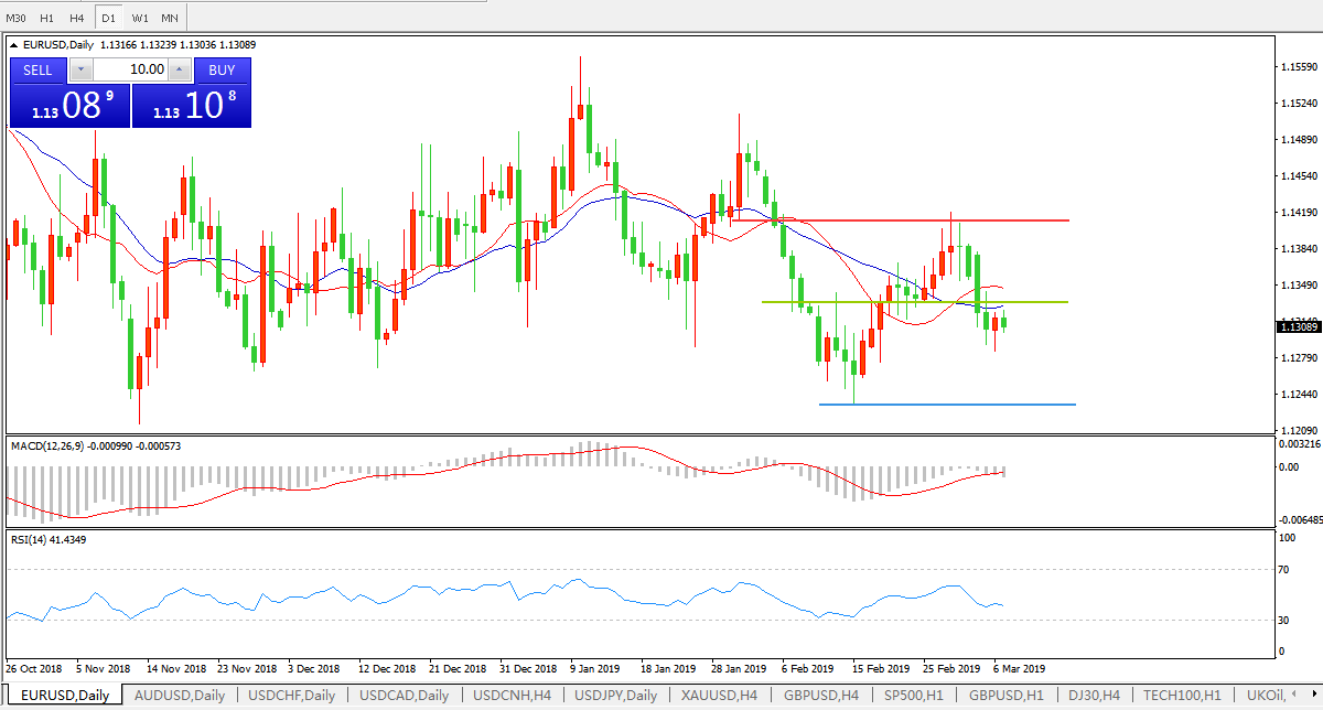 基本面分析:日内欧洲央行3月利率决议料按兵不动,不过货币政策立场料偏向鸽派,调降2019年经济增长预期至1.7%,并可能调降整体及核心通胀,在欧元区宏观经济表现令人失望的背景下,欧洲央行将维持当前的宽松货币政策,3-6月间可能实施新一轮TLTRO。德拉基释放政策信号的鸽派程度有多浓厚与欧美息息相关,一旦欧元兑美元跌破1.12关口,恐进一步深跌。
