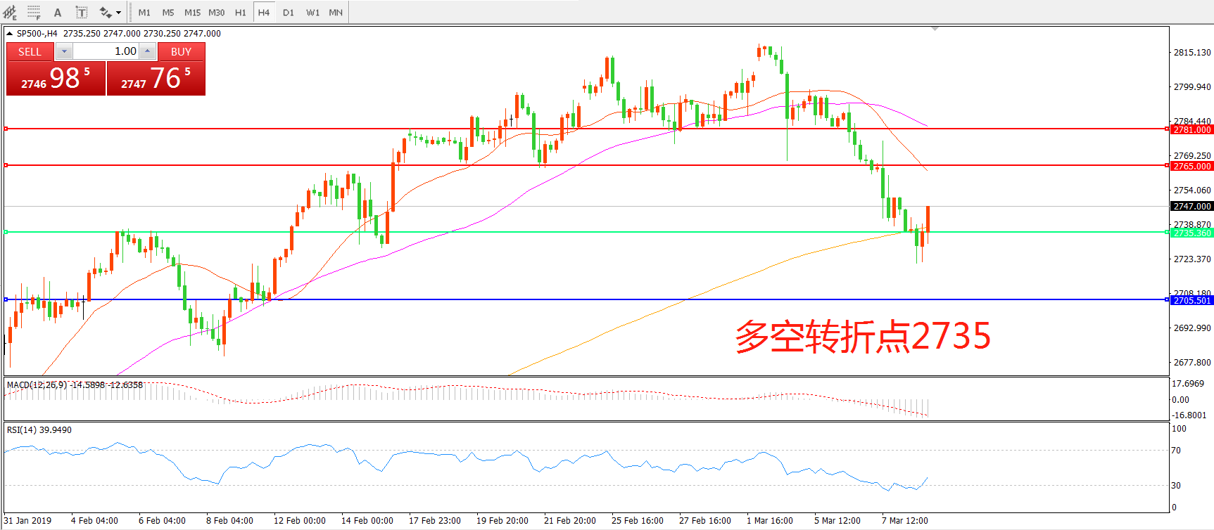 交易策略:在2735之下看跌,目标2705 2685