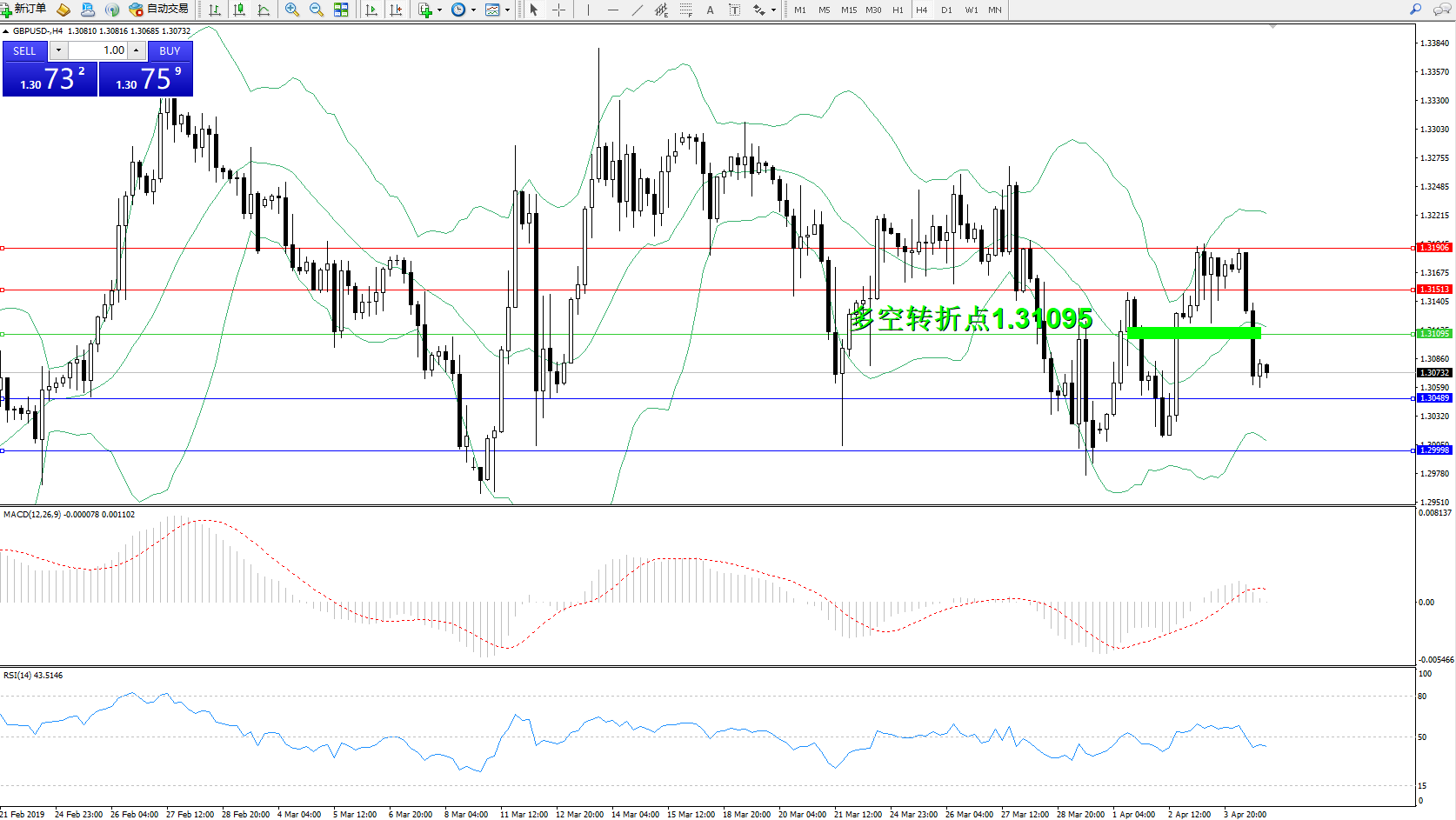 交易策略:1.31095下方看跌,目标1.304891.29998