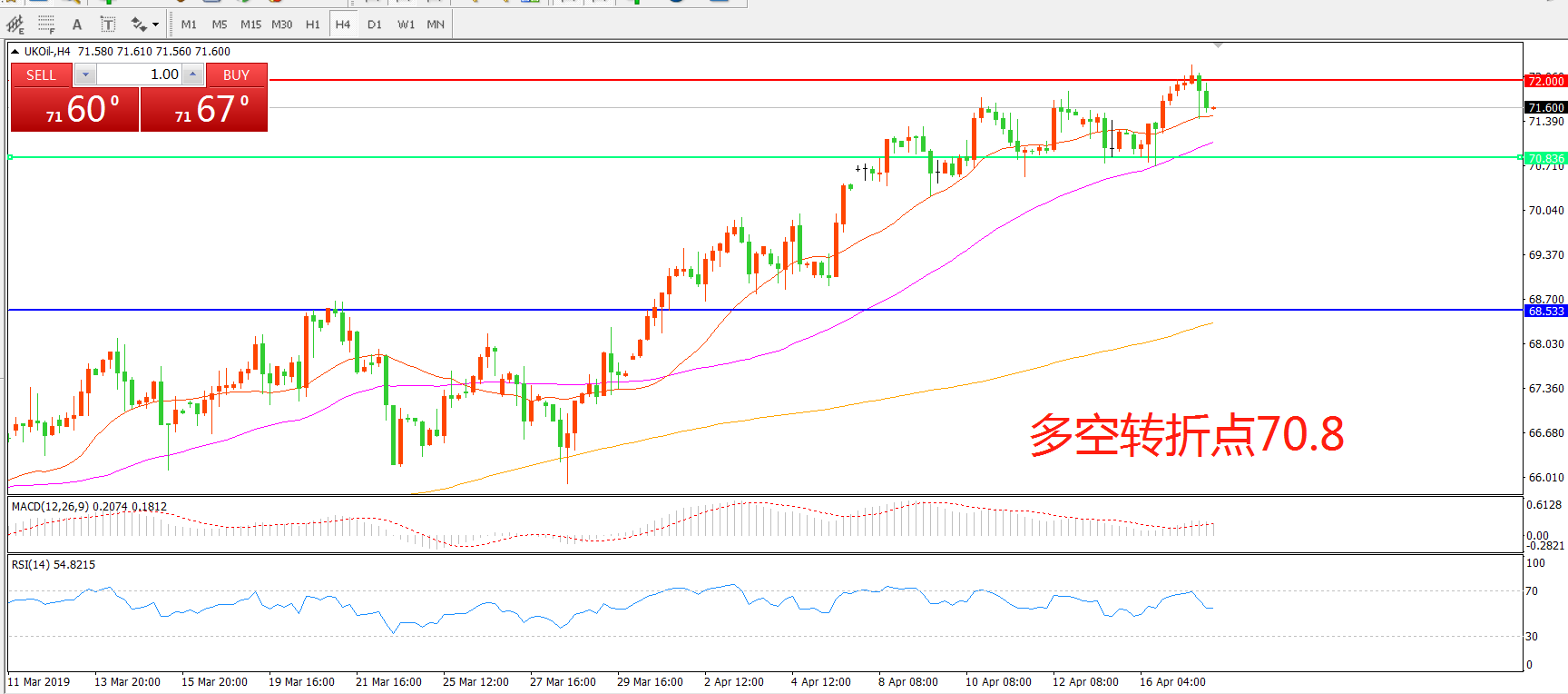 交易策略:在70.80之上看涨,目标72.00 74.50