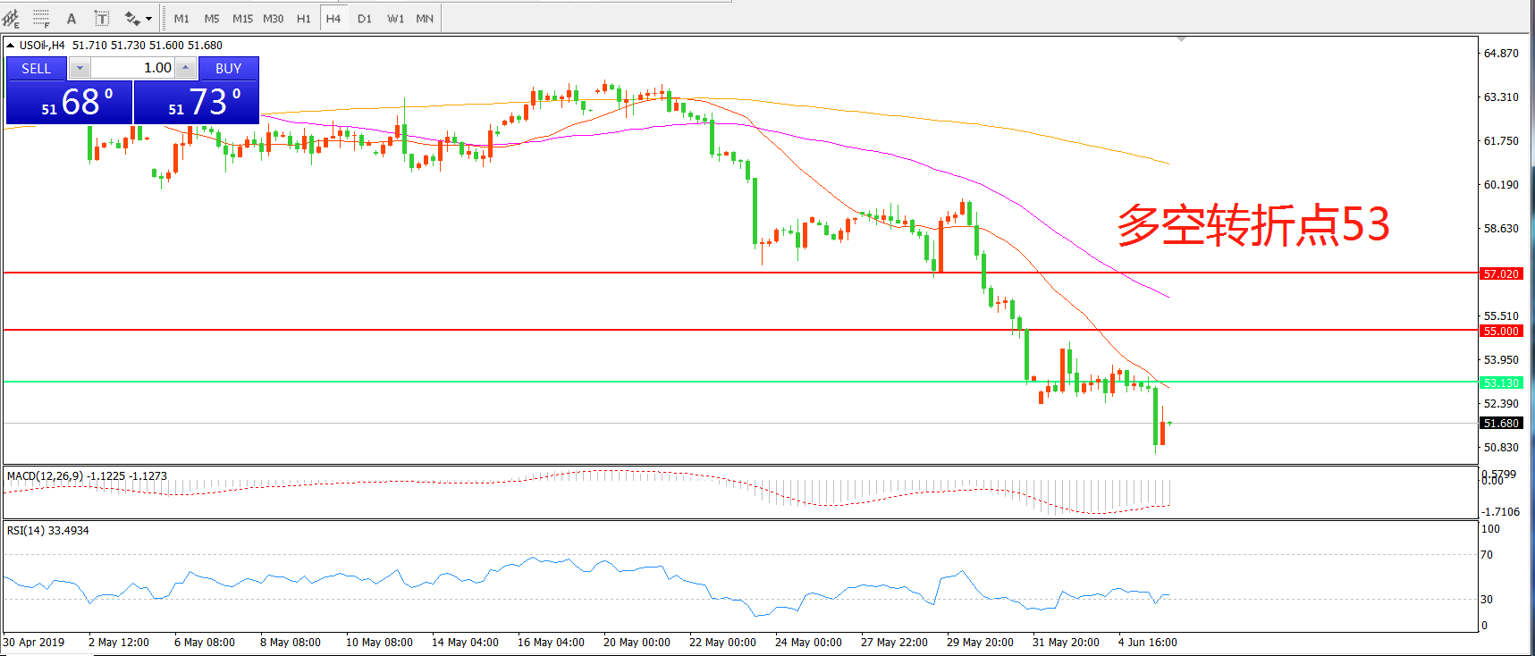 交易策略:在53.00之下看跌,目标50.00 46.00