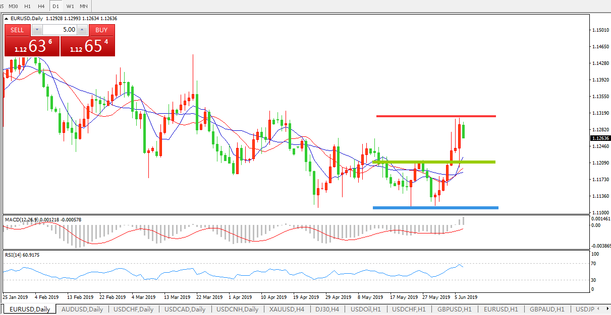 交易策略:1.1250上方看涨,目标1.1330、1.1450