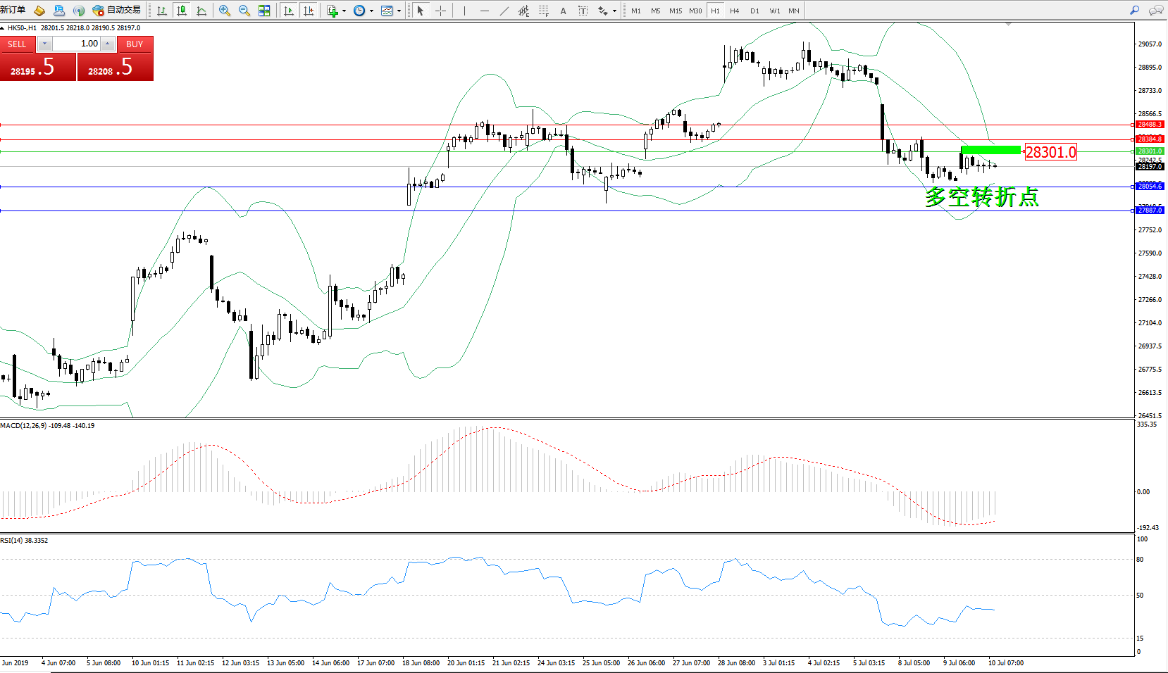 技术点评:高位运行后下挫之28200附近持续整理,下行动力有减弱迹象,布林带指标呈收口态势,处于布林带中轨下方徘徊,MACD指标空头区域有平缓上移迹象,RSI指标空头区域整理;