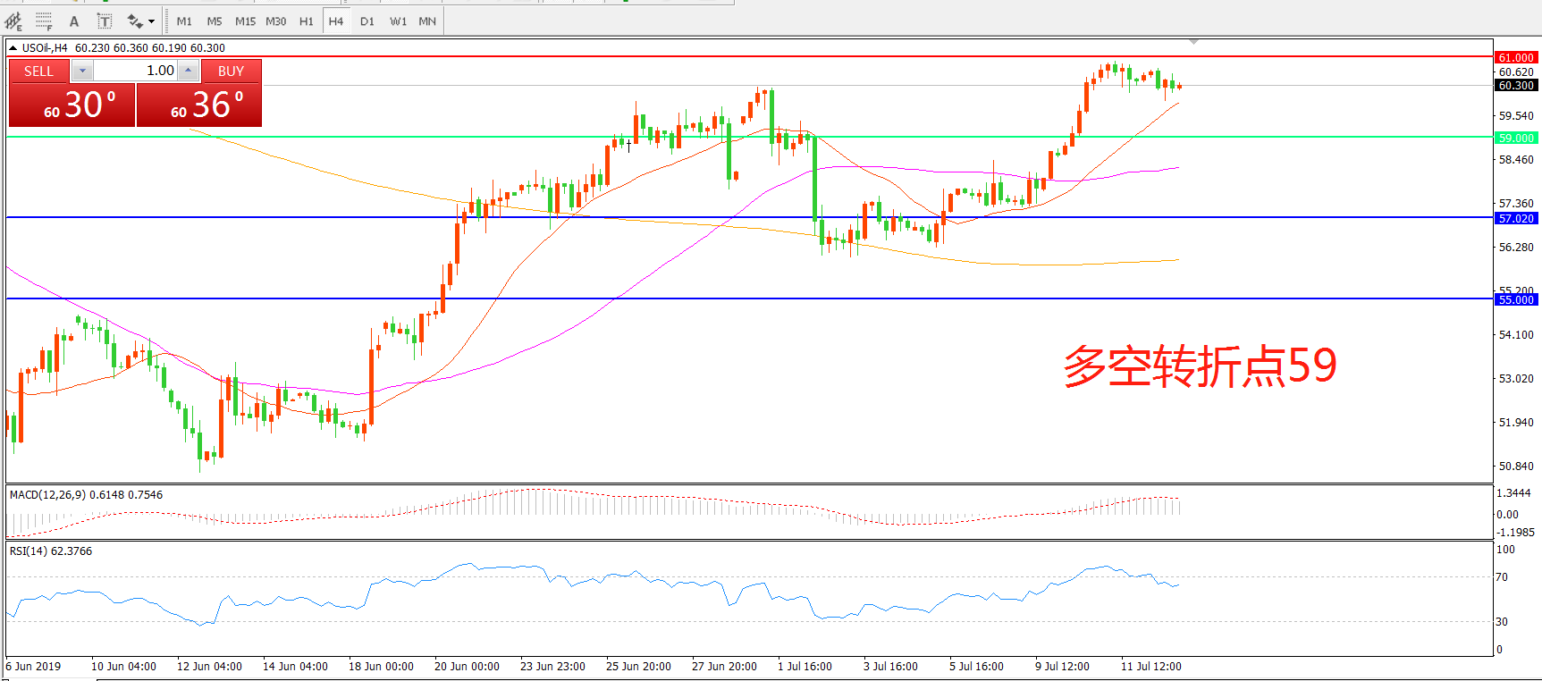 多空转折点:57.00