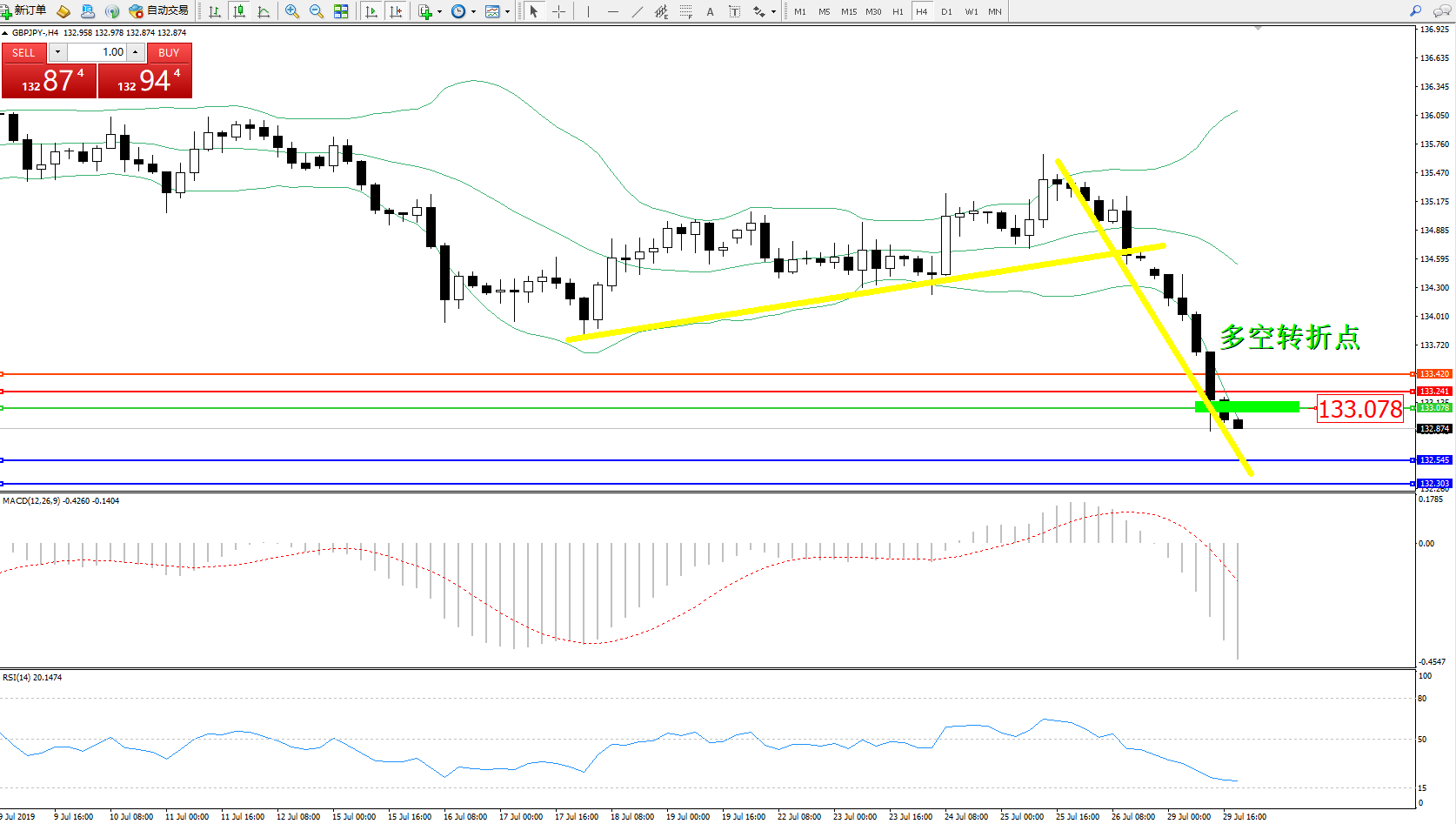 技术点评:下行动力持续,且逐渐加强跌势中,布林带指标呈张口态势,延续下轨下挫走势良好,且未有止步迹象,MACD指标空头区域急速重挫,RSI指标跌至超卖区15均衡线上方附近徘徊;