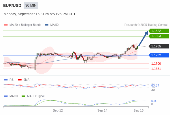 欧元/美元 当日内 : 看涨,当 1.1732 为支撑位。