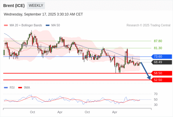在 73.60 之下,看跌,目标价位为 58.50 ,然后为 52.50 。