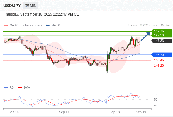 在 146.70 之上,看涨,目标价位为 147.50 ,然后为 147.75 。