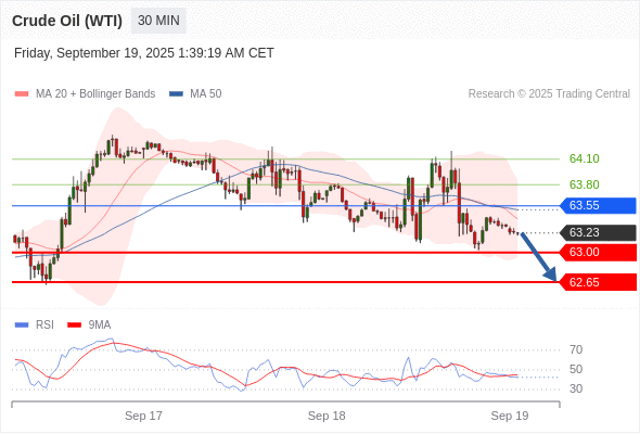 交易策略: 在 63.55 之下,看跌,目标价位为 63.00 ,然后为 62.65 。