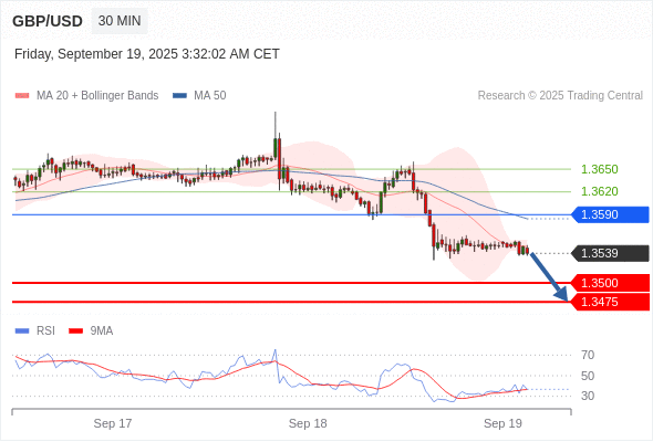 在 1.3590 之下,看跌,目标价位为 1.3500 ,然后为 1.3475 。