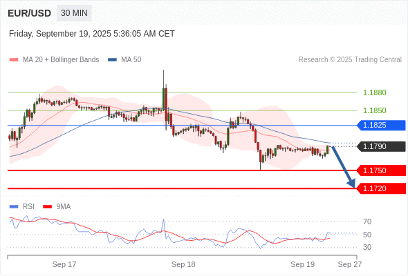 在 1.1825 之下,看跌,目标价位为 1.1750 ,然后为 1.1720 。