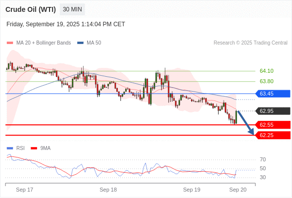 在 63.45 之下,看跌,目标价位为 62.55 ,然后为 62.25 。