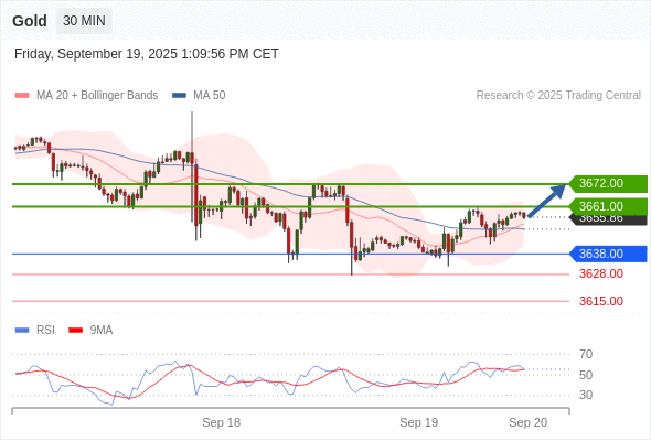 在 3638.00 之上,看涨,目标价位为 3661.00 ,然后为 3672.00 。