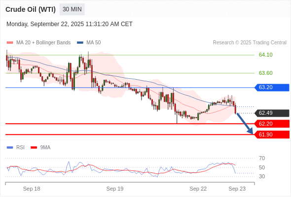 在 63.20 之下,看跌,目标价位为 62.20 ,然后为 61.90 。