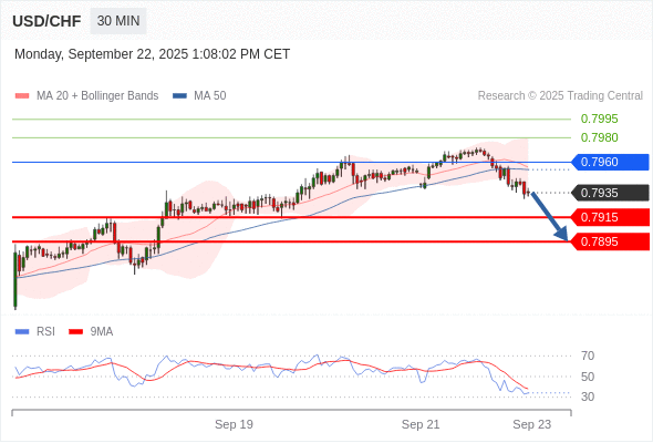 交易策略: 在 0.7960 之下,看跌,目标价位为 0.7915 ,然后为 0.7895 。