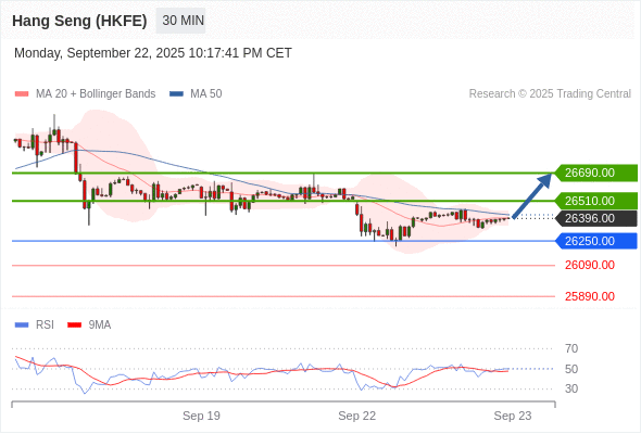在 26250.00 之上,看涨,目标价位为 26510.00 ,然后为 26690.00 。