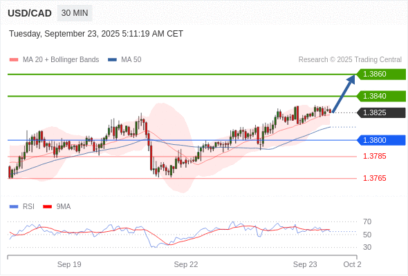 在 1.3800 之上,看涨,目标价位为 1.3840 ,然后为 1.3860 。