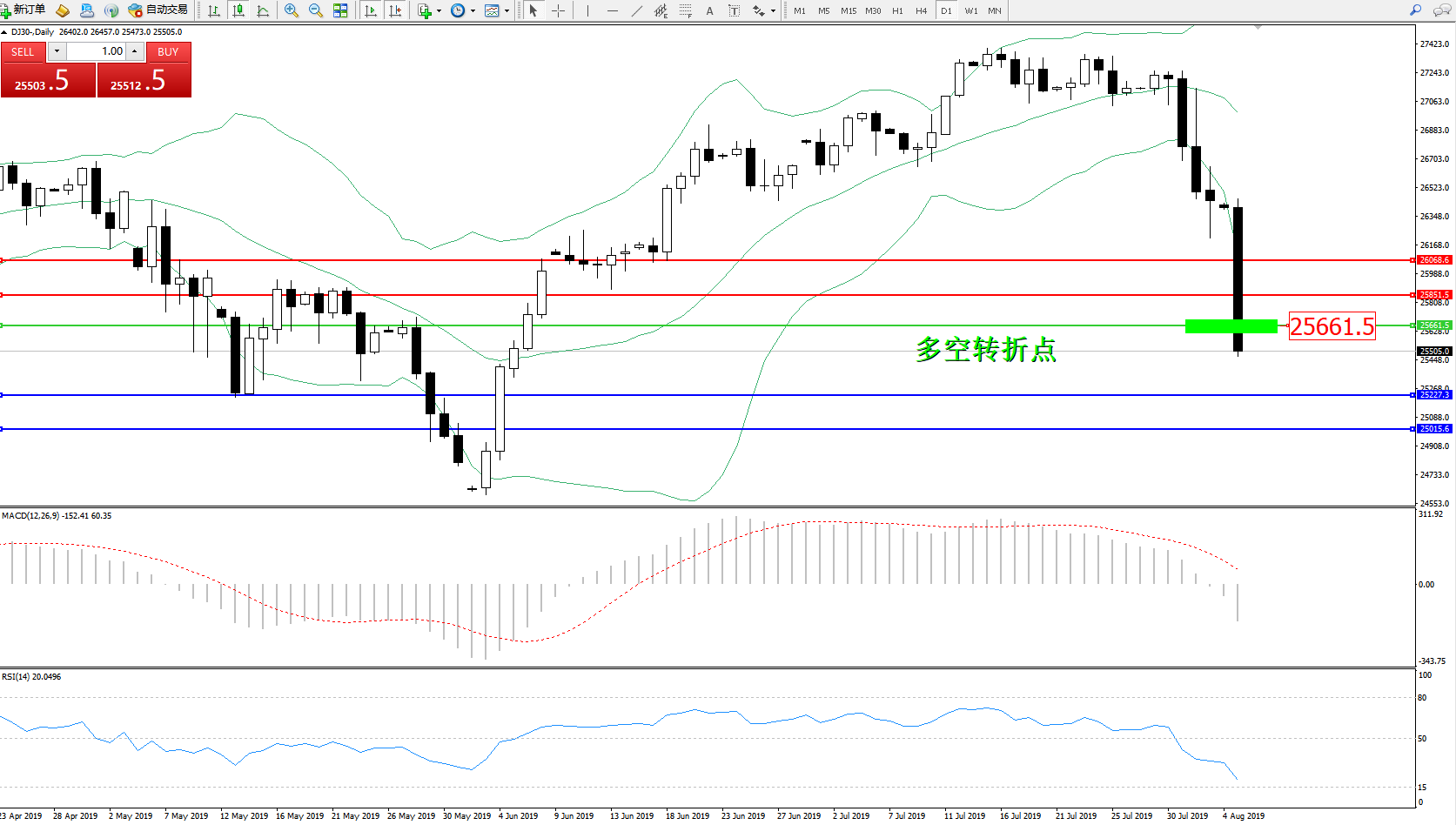 道琼斯指数85日(周一)收盘下跌767.30点,跌幅2.90%,报25717.74点。由于日前美方宣称拟对3000亿美元中国输美商品加征10%关税,严重违背中美两国元首大阪会晤共识,国务院关税税则委员会对83日后新成交的美国农产品采购暂不排除进口加征关税,中国相关企业已暂停采购美国农产品。中方有关部门表示,中国市场容量大,进口美国优质农产品前景光明,但希望美方认真落实中美两国元首大阪会晤达成的共识,言而有信,落实承诺,为两国农业领域合作创造必要条件。