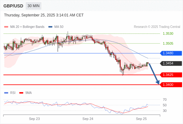 在 1.3480 之下,看跌,目标价位为 1.3425 ,然后为 1.3400 。