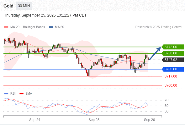 在 3730.00 之上,看涨,目标价位为 3760.00 ,然后为 3772.00 。