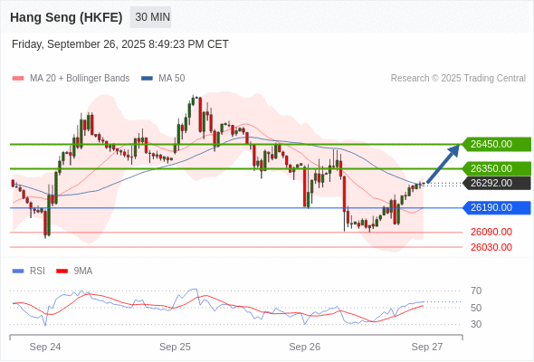在 26190.00 之上,看涨,目标价位为 26350.00 ,然后为 26450.00 。