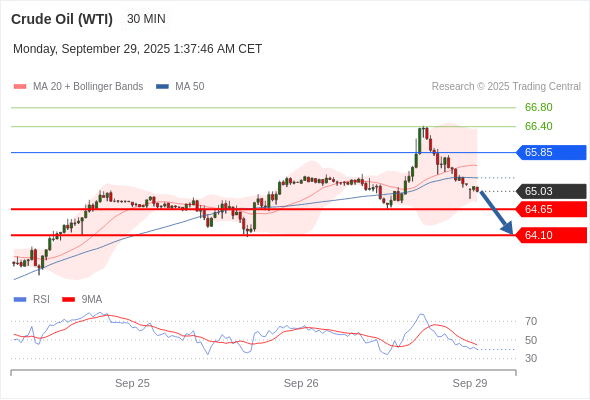 在 65.85 之下,看跌,目标价位为 64.65 ,然后为 64.10 。