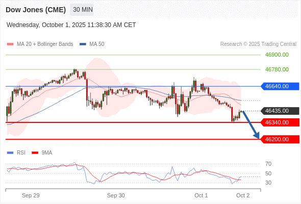 在 46640.00 之下,看跌,目标价位为 46340.00 ,然后为 46200.00 。