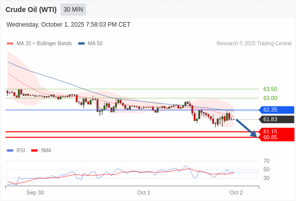在 62.35 之下,看跌,目标价位为 61.15 ,然后为 60.85 。