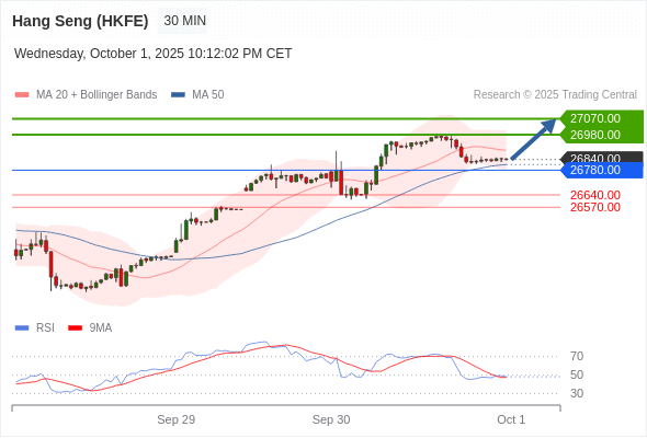 香港恒生指数期货 当日内: 超短线(当日内)支撑位在26780.00附近。