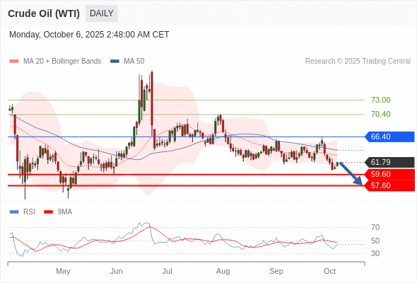 交易策略: 在 66.40 之下,看跌,目标价位为 59.60 ,然后为 57.60 。