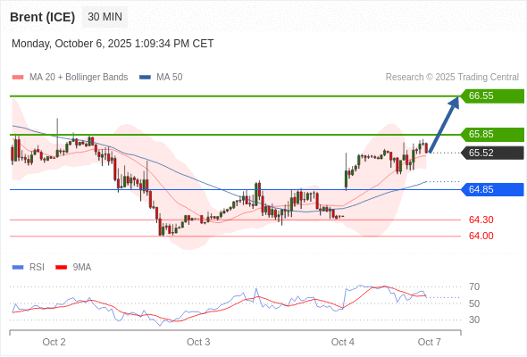 在 64.85 之上,看涨,目标价位为 65.85 ,然后为 66.55 。