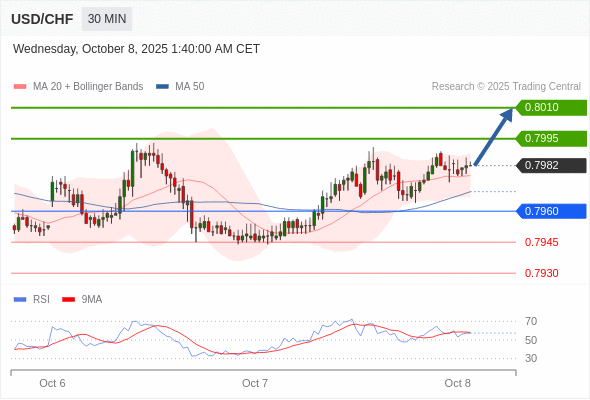 在 0.7960 之上,看涨,目标价位为 0.7995 ,然后为 0.8010 。