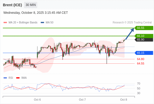 在 65.15 之上,看涨,目标价位为 66.10 ,然后为 66.55 。