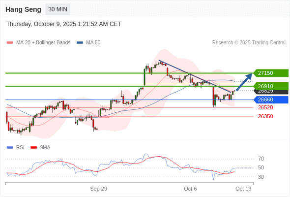 在 26660 之上,看涨,目标价位为 26910 ,然后为 27150 。