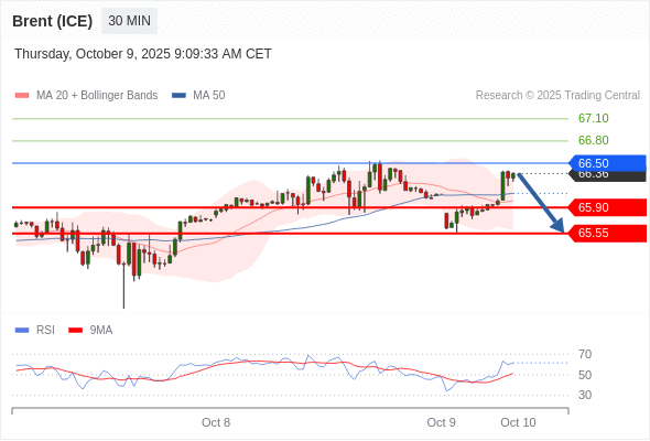 布伦特原油 (ICE) (Z5) 当日内: 短期关键阻力位在66.50。