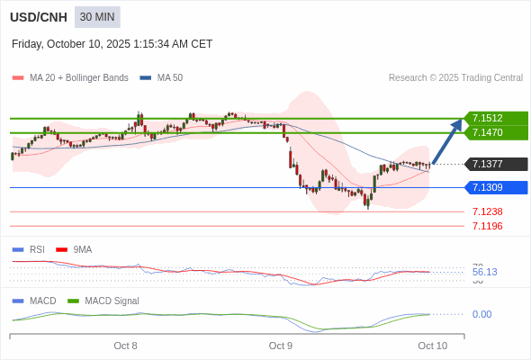 美元/人民币 当日内 : 看涨,当 7.1309 为支撑位。