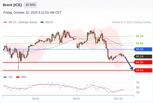 在 65.55 之下,看跌,目标价位为 64.90 ,然后为 64.50 。