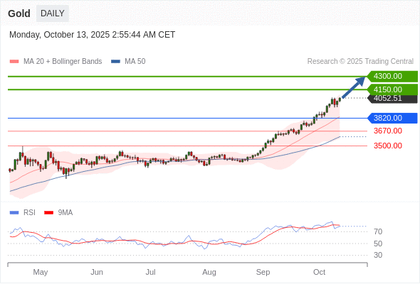 在 3820.00 之上,看涨,目标价位为 4150.00 ,然后为 4300.00 。