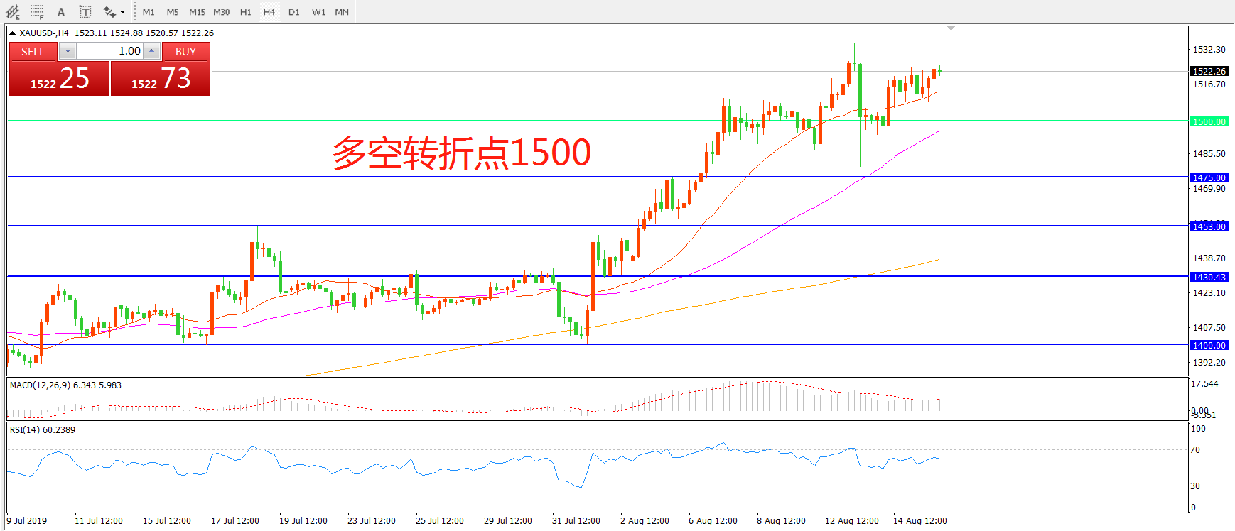 多空转折点:1500.00