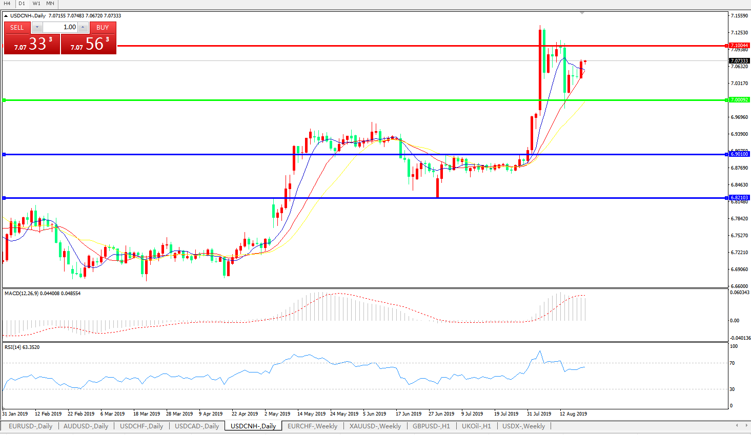美元兑人民币USDCNH 日线图: