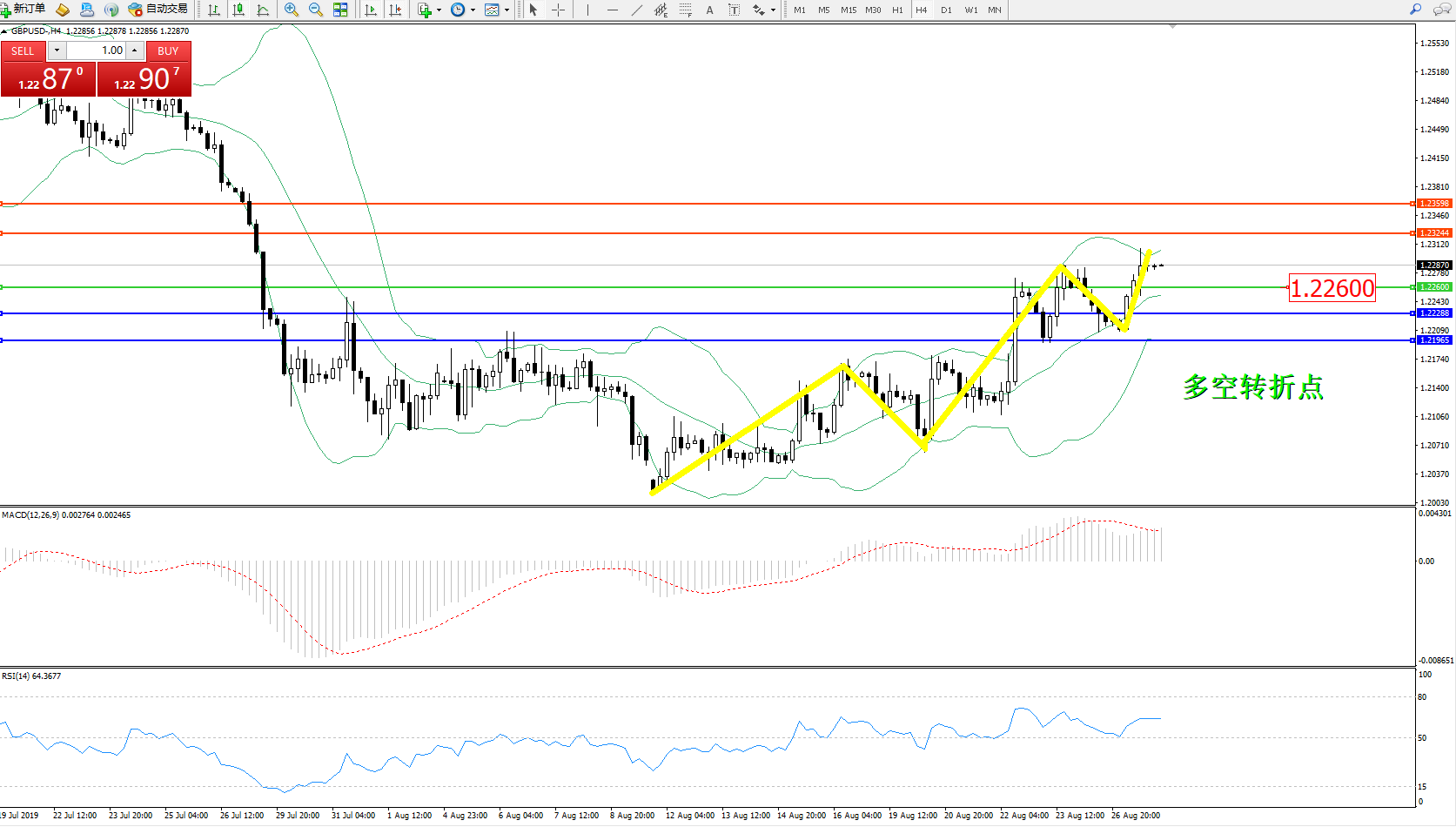 交易策略:1.22600上方看涨,目标1.232441.23598