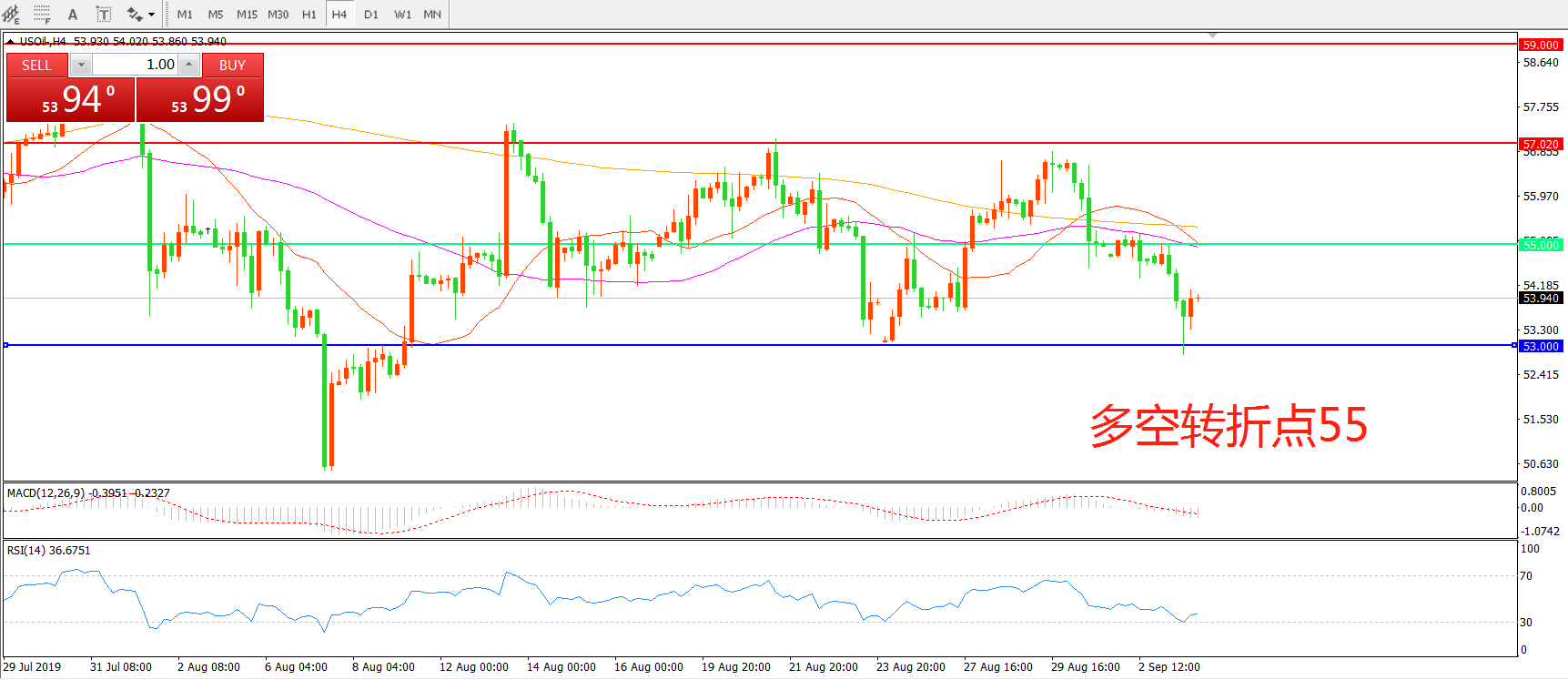 交易策略:在55.00之下看跌,目标53.00 49.00