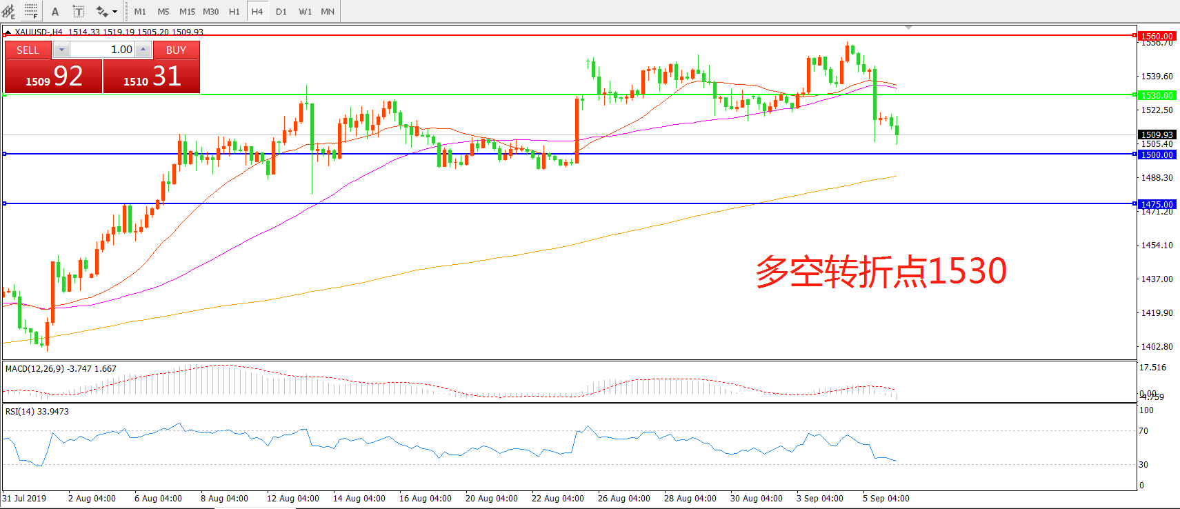 周四(9月5日),美国8月ADP就业人数19.5万,远超预期的14.8万,ADP数据的大幅利好,缓解了市场的避险情绪,黄金直线下跌47美元,最终收报1518.35美元/盎司。今日晚间20:30,美国劳工部将公布美国8月份非农就业报告,这是9月美联储利率决议之前最重要的一个美国经济数据,因此极为关键。在本次非农之后差不多4个小时,美联储主席鲍威尔就将讲话,美联储是否会因为美国经济数据的表现改变措辞是市场最为关心的问题,一旦前期金价获利盘出现集中平仓,短期黄金可能再次测试1500美元一线。