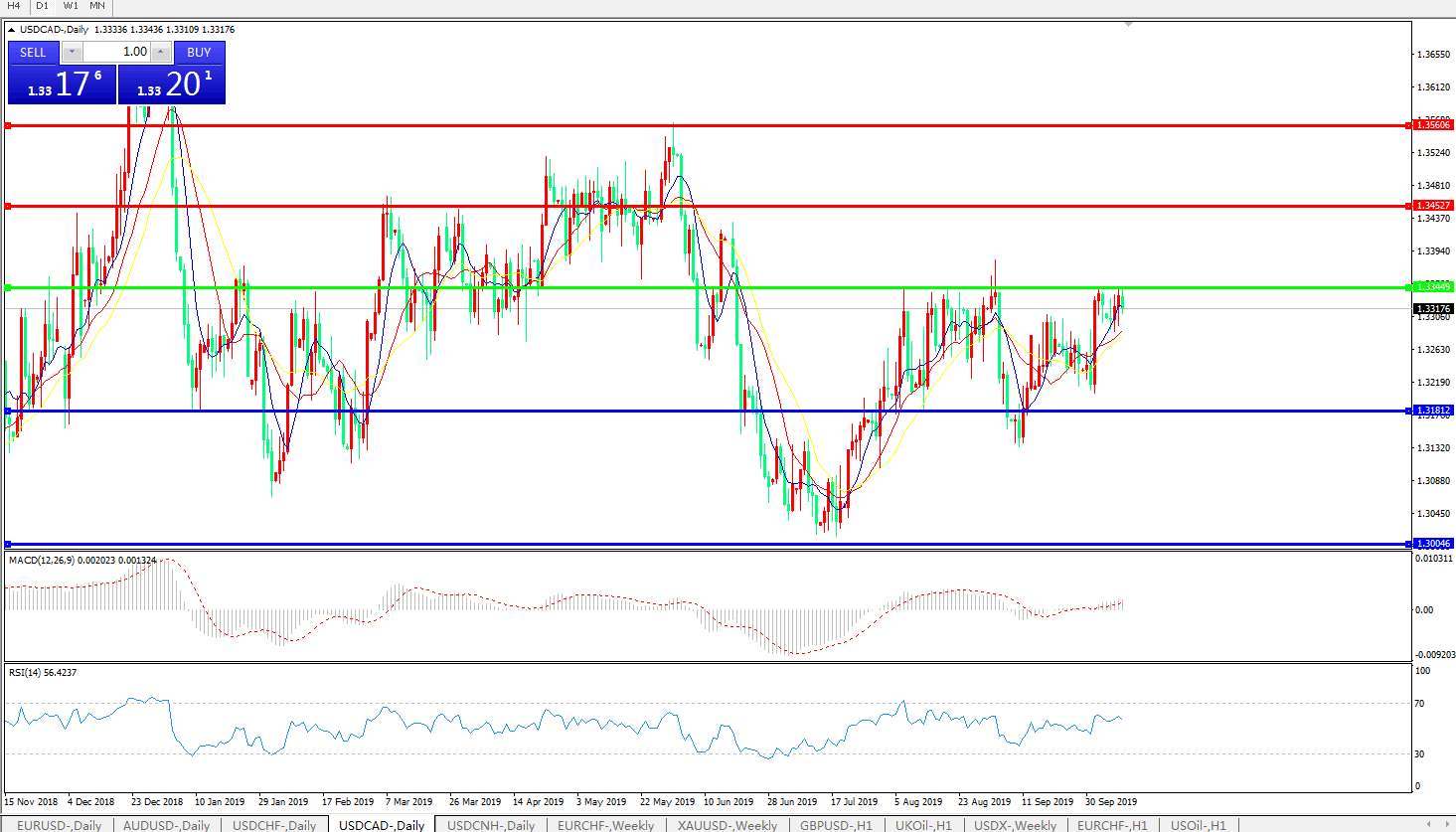 美元兑加元在周三欧洲时段一度下跌失守1.33关口,因日内再传中东地缘负面消息,导致国际油价持续走高,拉动产油国货币加元走强。不过,在纽约时段开盘时分,美元兑加元再度反弹,恢复强势表现;虽然有着油价坚挺加持,但是决定美加货币对走向的仍是美加两国经济及货币政策落差,因此,此后美联储的动向就尤为关键。美联储主席鲍威尔将在北美金融市场开盘后不久发表讲话,其基于最新数据对美国经济现况与未来的评估,对于汇市走势方向而言至关重要。之后,此前决议中就已经透露了鹰歌双方严重分歧的美联储,还将发布更详细的会议纪要来向公众袒露其意见走向; 在上述背景下,美元指数维持高位盘整,市场也缺少进一步做空美元兑加元的充足动力,而原油价格的反弹也并未令油价行情彻底走出下行趋势。综合上述因素,在美联储释放强力宽松消息之前,美元兑加元很难有太大的进一步下探空间