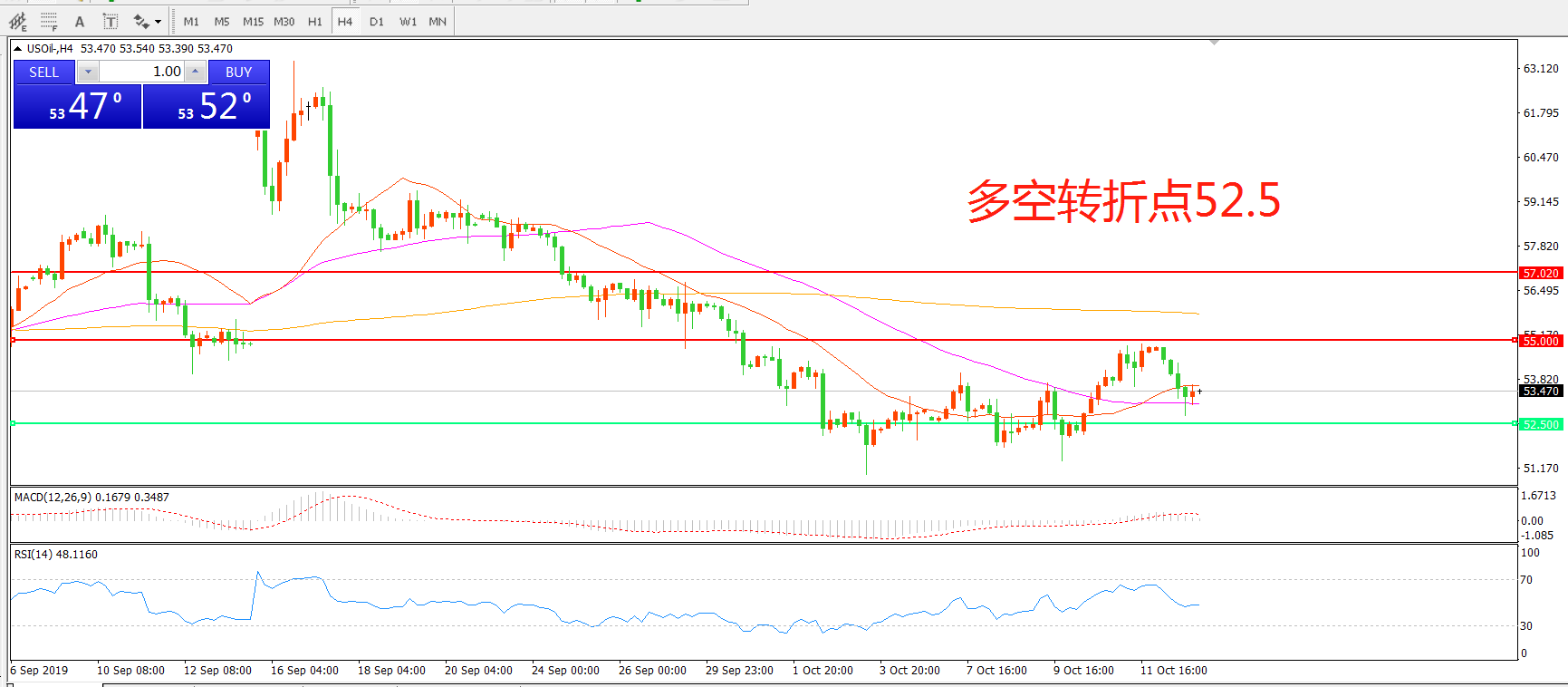 多空转折点:52.50