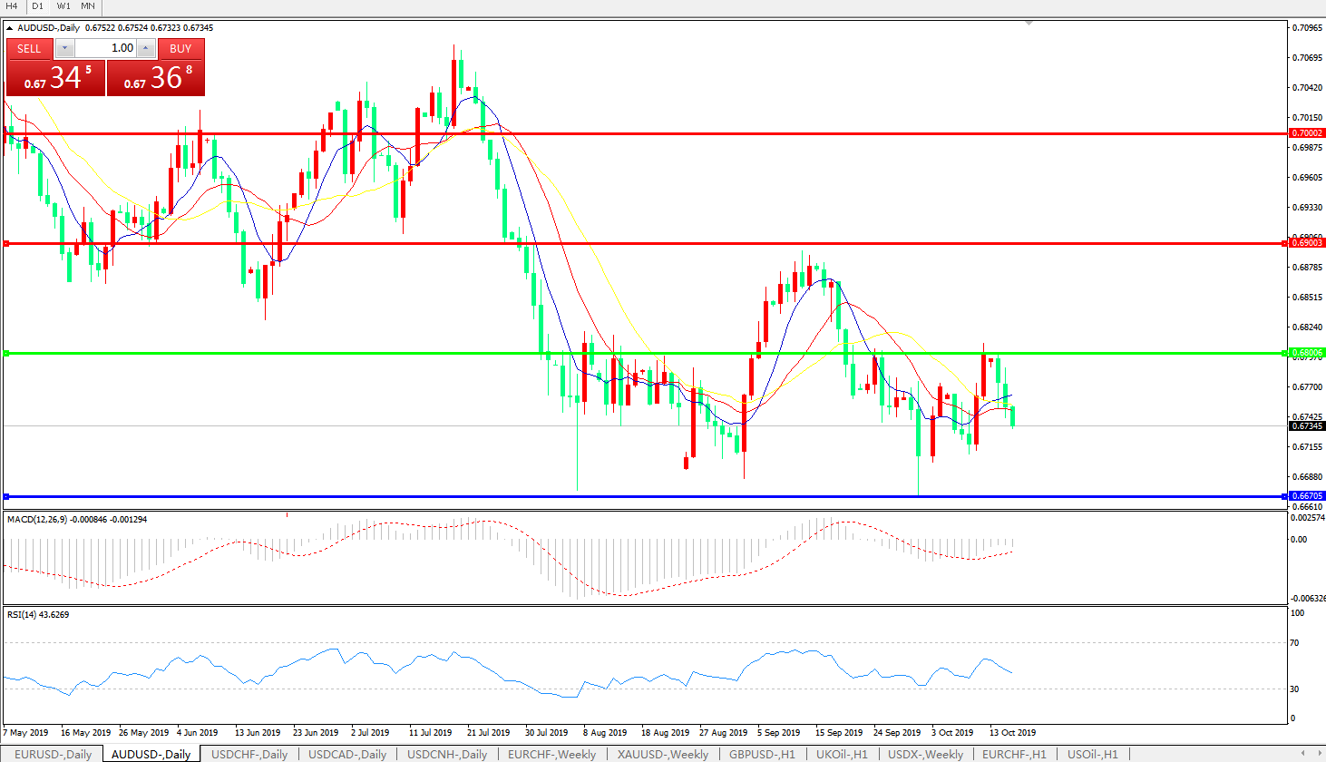澳元兑美元在周二日内陷于窄幅盘整,波动率相比此前显著下降,显示谨慎情绪已经重新主导了交易抉择,投资者在后市仍将观望进一步的消息面事件变化,来研判进一步走势方向;此前,澳元汇价一度因为贸易领域的过度乐观情绪降温,而在周一亚欧时段强力回吐上周以来的涨幅,不过在进入北美时段后,消息面的重新回暖再度带动汇价企稳;投资者对全球贸易前景目前持有审慎乐观态度,这和货币政策宽松的预期影响相互抵消,令澳元汇价或在短期内仍陷于底部盘整区间; 这意味着澳元汇价此后仍会在底部区间中盘整,上方初步阻力位在前期高点0.6818,下方在0.6670-80区间则有着双重底支撑,直到有更强力的决定性消息出炉后,汇价才有望彻底脱离当前盘整箱体
