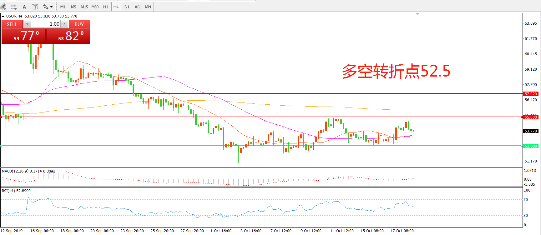 多空转折点:52.50