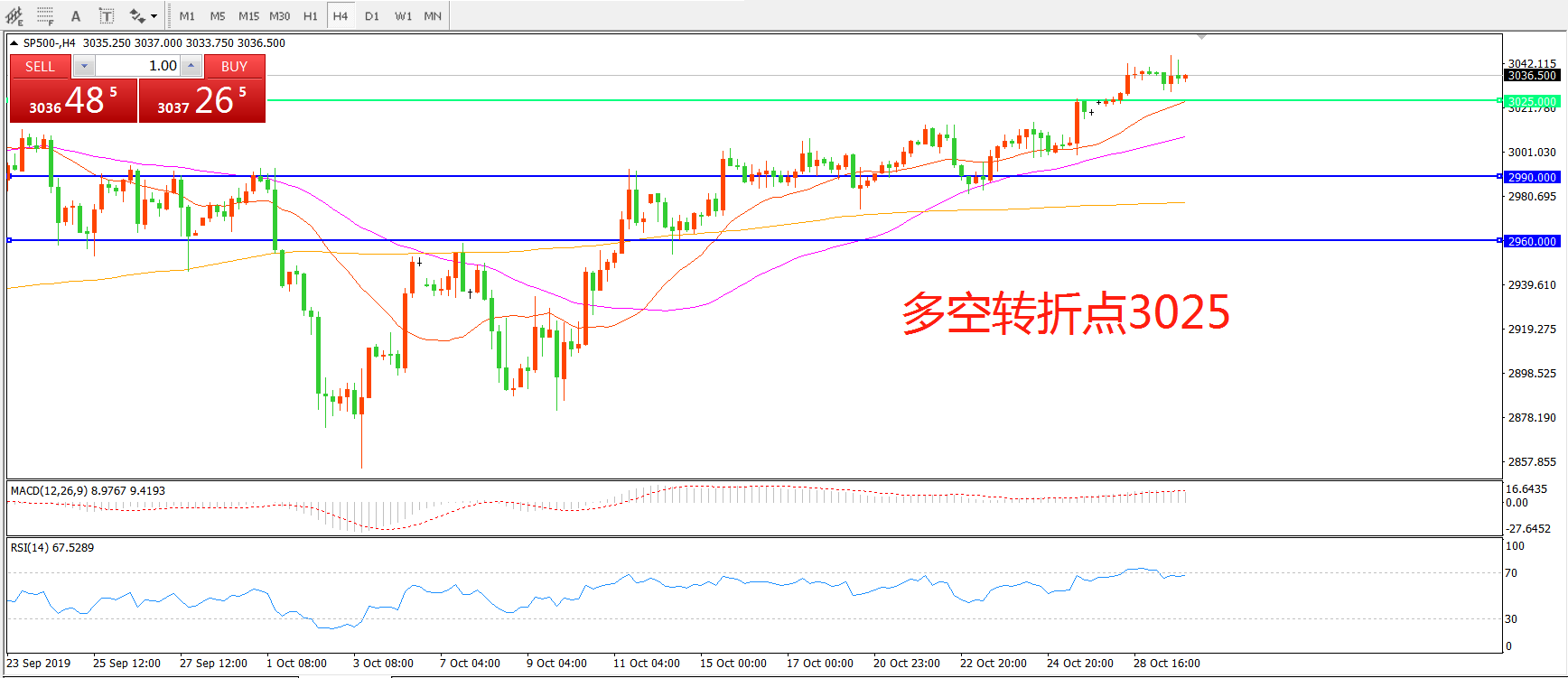 多空转折点:3025.00